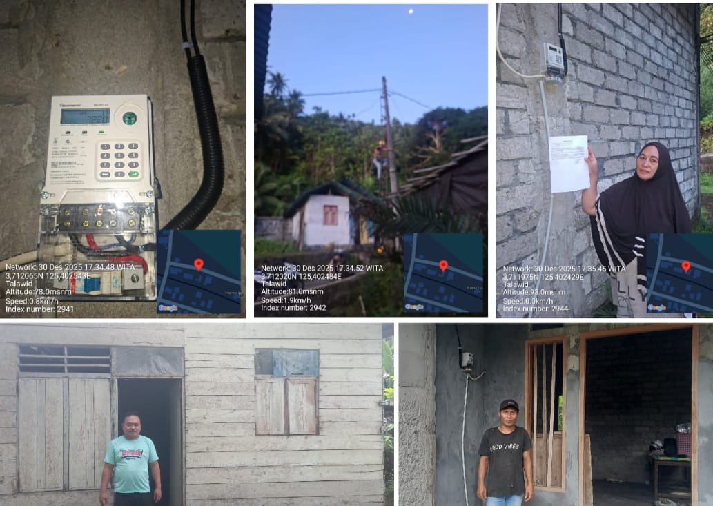 Sangihe, Lintassejahteranews.com – Sebanyak 11 Kepala Keluarga (KK) di Kampung Talawid, Kecamatan Kendahe, Kabupaten Kepulauan Sangihe, menerima Bantuan Pasang Baru Listrik (BPBL) dengan daya 900 VA dari Kementerian Energi dan Sumber Daya Mineral (ESDM). Pemasangan listrik tersebut dilaksanakan langsung oleh petugas PLN pada Selasa, 30 Desember 2025.